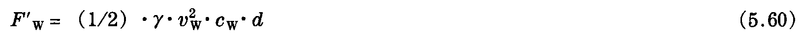 從表5.7中查出空氣動力阻力系數cw。與式 (5.34) 類似,單線的風偏移,例如電車型接觸網設施中的接觸線,在基準支撐右側點x處 (如圖5.11) 的情況可用下式表示